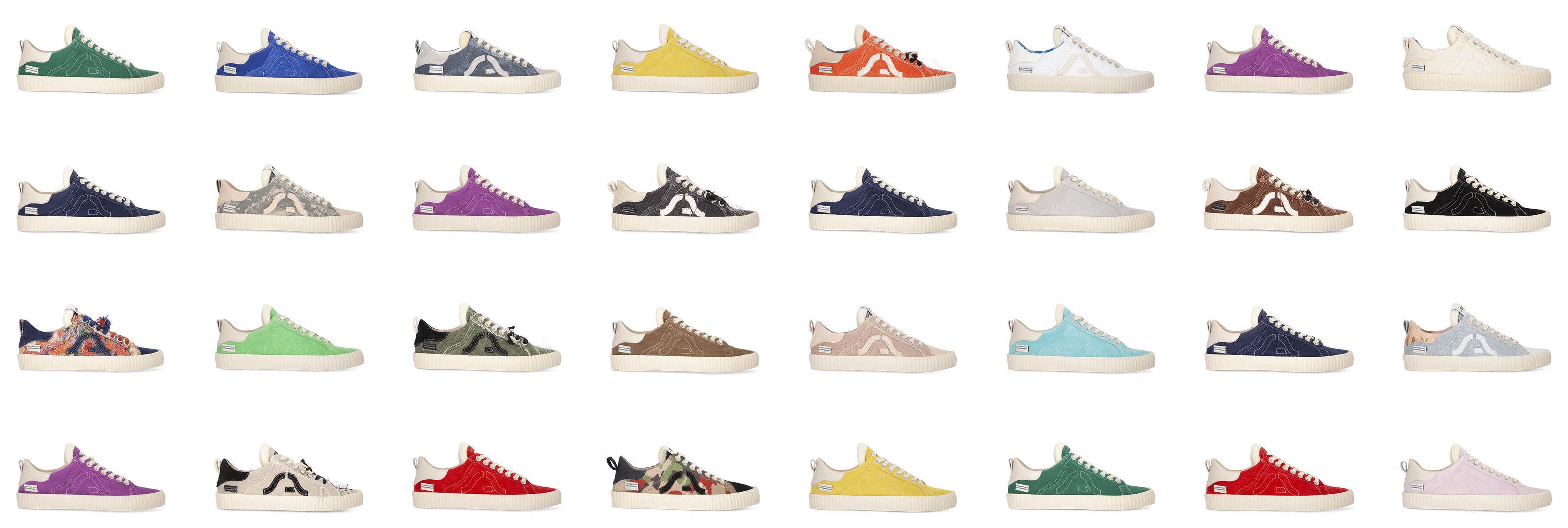 Gli spunti e le idee provengono dalla vita di tutti i giorni prendendo gli abiti e gli oggetti in disuso, ridandogli vita in modo creativo e artistico. Camicie hawaiane, cravatte, t-shirt, giubbotti anni ‘60 di pelle, giubbotti di camoscio, camere d’aria e sacchi di juta per il caffè vengono tagliati, assemblati, cuciti con una manifattura tipicamente italiana, per formare un paio di scarpe unico. Unico perché non c’è un materiale uguale all’altro.