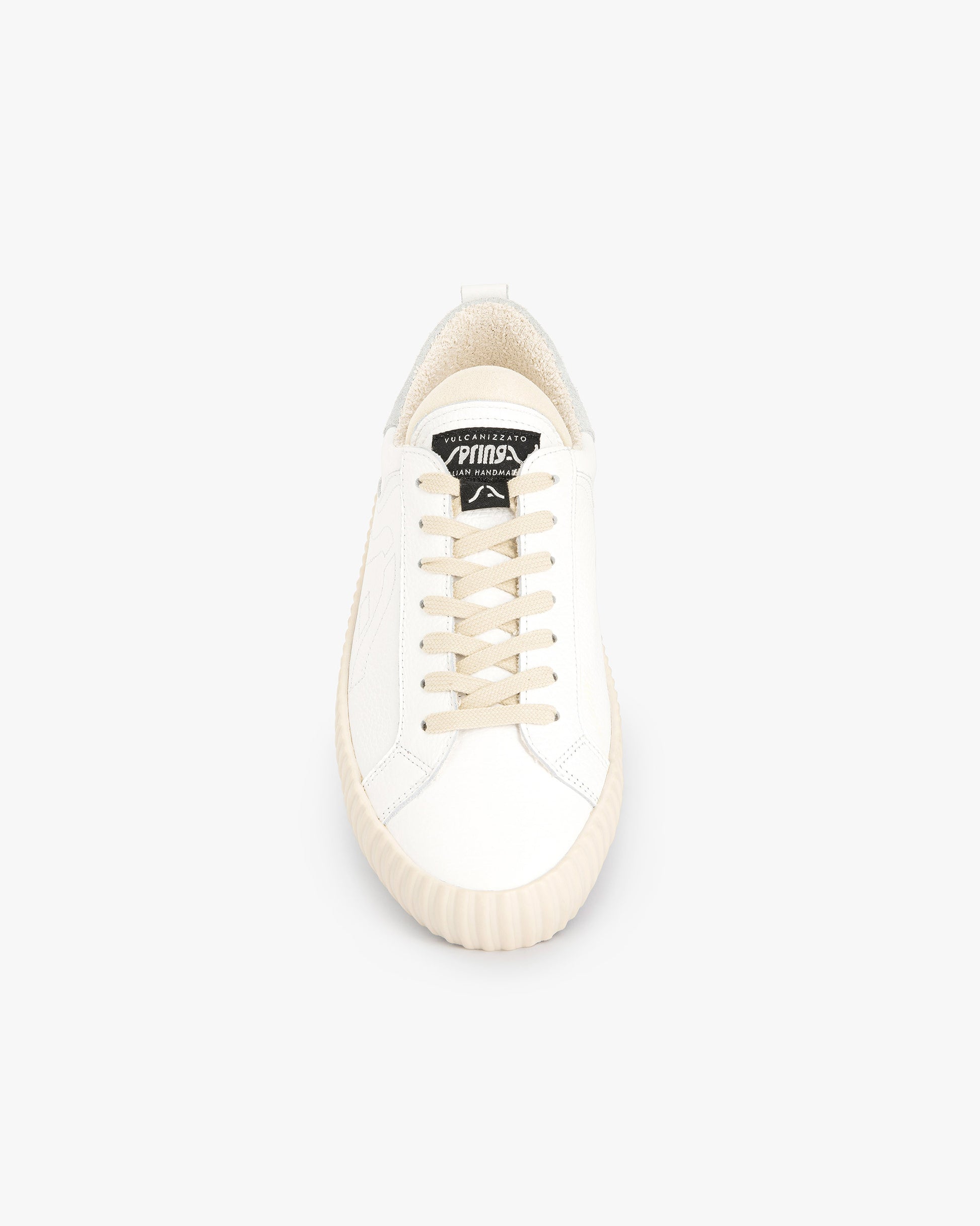 La sneakers Wavy Leather è un modello dal gusto rock, realizzata in pelle martellata. I suoi dettagli sono unici perché realizzata a mano e quindi ogni paio è differente dall’altro. Nella variante bianca i lacci sono di colore beige.