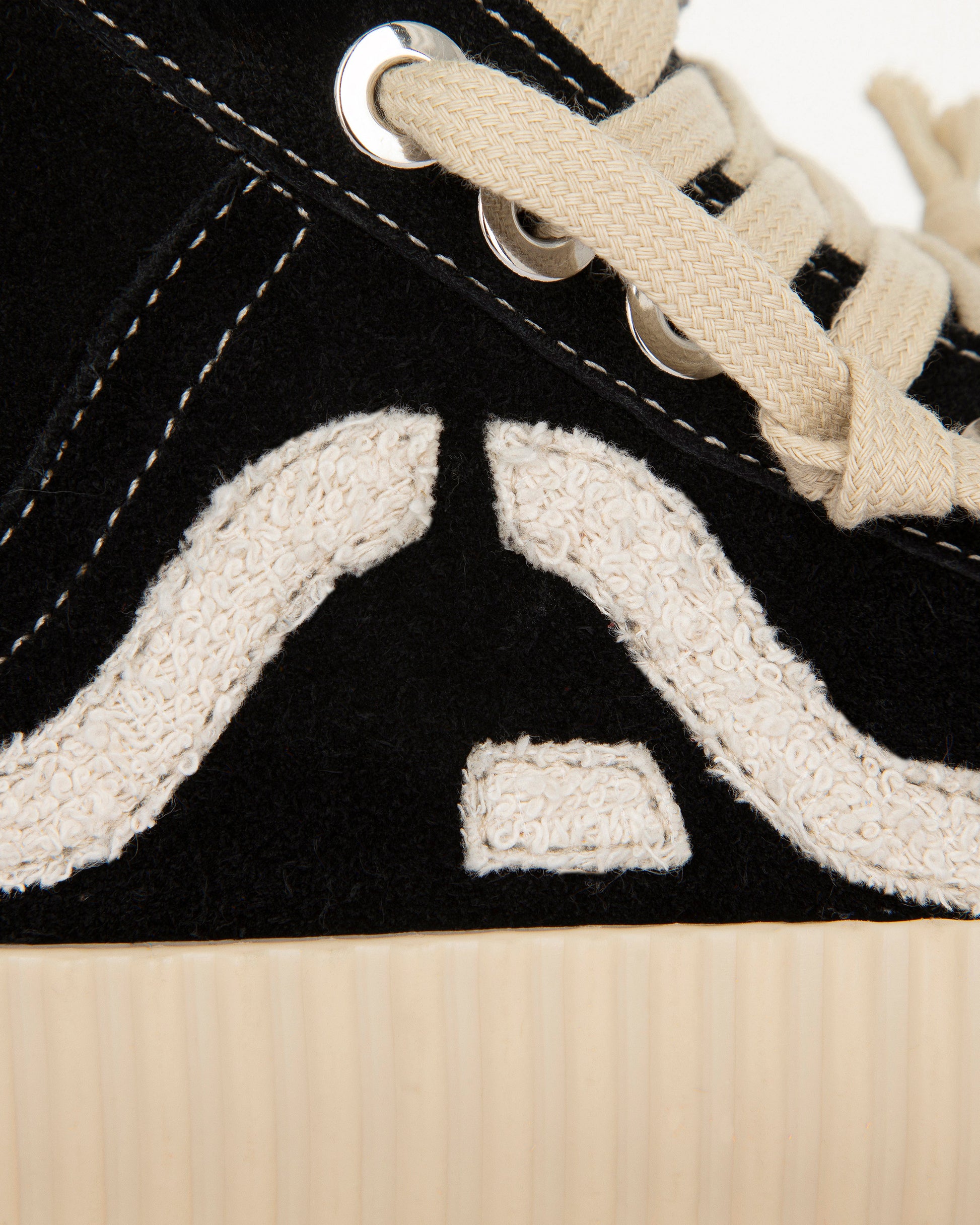 La sneakers Wavy Suede è un modello dallo stile casual. La morbidezza della pelle scamosciata conferisce comfort e praticità. I suoi dettagli sono unici perché realizzata a mano e quindi ogni paio è differente dall’altro. Nella variante nera i lacci sono di colore beige.